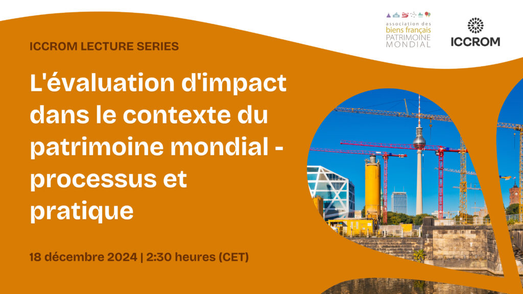 En collaboration avec l’CCROM, nous organisons un webinaire sur « L’évaluation d’impact dans le contexte du patrimoine mondial – processus et pratique » le 18 décembre à 14hh30.